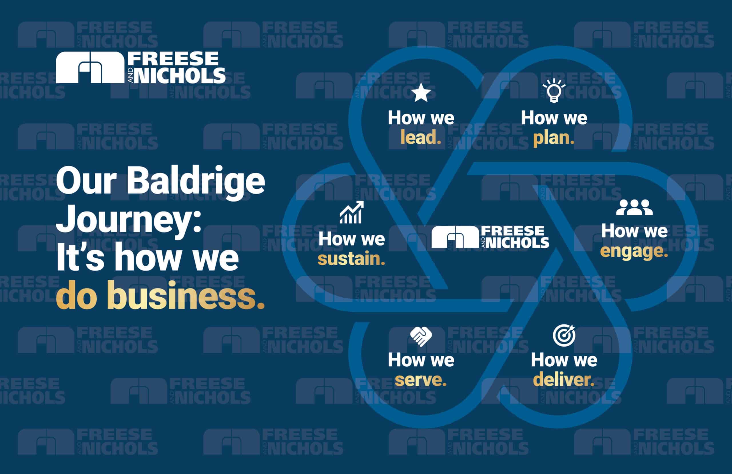 For nearly three decades, our firm has applied the Baldrige program’s integrated management framework and assessment tools to improve practices and measure results, strengthening our business to continue delivering exceptional client service. A crucial aspect of our Baldrige journey is the continuous improvement of processes, driven by valuable feedback from clients and staff. This collaborative approach enables Freese and Nichols to meet the highest standards of engineering and planning excellence.