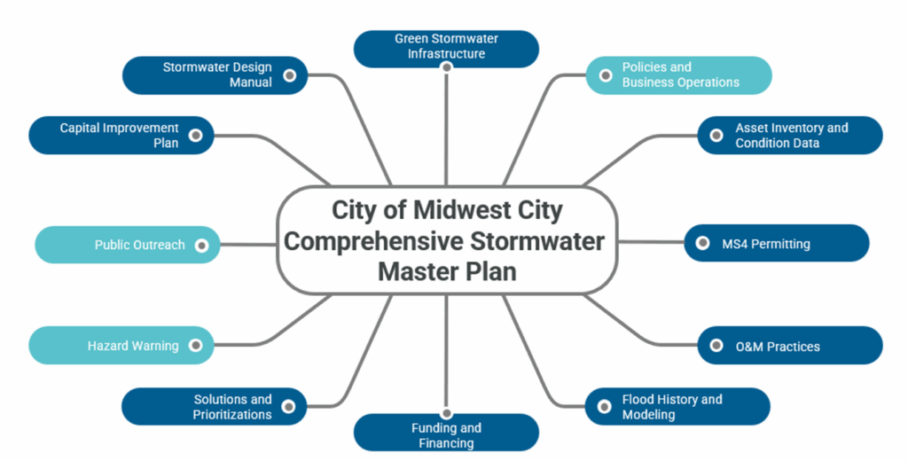 Midwest City, Oklahoma, is taking bold steps to shape its future with an ambitious, integrated planning effort. The City is developing a Wastewater Master Plan, Stormwater Master Plan, Comprehensive Plan, Water Master Plan, Groundwater Master Plan, Water Resource Recovery Facility Master Plan and a Public Works Facility Master Plan. These are coordinated initiatives working together to strengthen infrastructure, guide growth and define a unified vision for the community. The collaborative approach positions Midwest City to meet today’s needs while preparing for a resilient, thriving tomorrow.